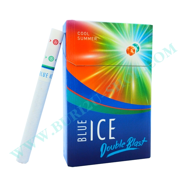 BLUE ICE DOUBLE BLAST เป็นบุหรี่ใหม่ล่าสุดจากญี่ปุ่น มาพร้อมเม็ดบีบกลิ่นพั๊นช์และเม็ดบีบเมนทอลทั้ง 2 เม็ดในมวนเดียว